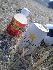 地べたに正座してジュースをのむ